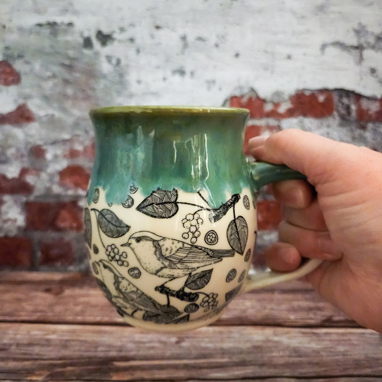 As an adolescent, I excelled at calligraphy, and enjoyed painting and drawing at different times throughout my life. When I had just moved to the town where I now live, I was searching for something to do with myself. My search eventually led me to a local pottery guild where I enrolled in a class and, ultimately, a membership. I was hooked from the first class, and I’ve been exploring it ever since. It has been a never-ending joy to always be finding new ways to form and decorate this fabulous medium that is clay!